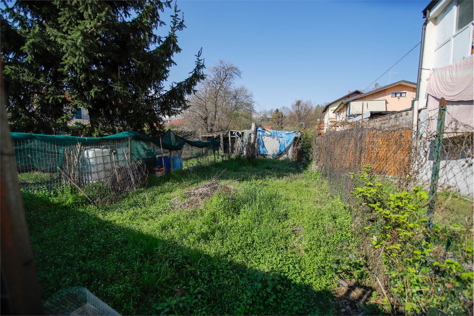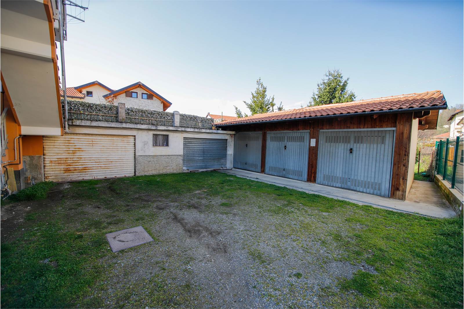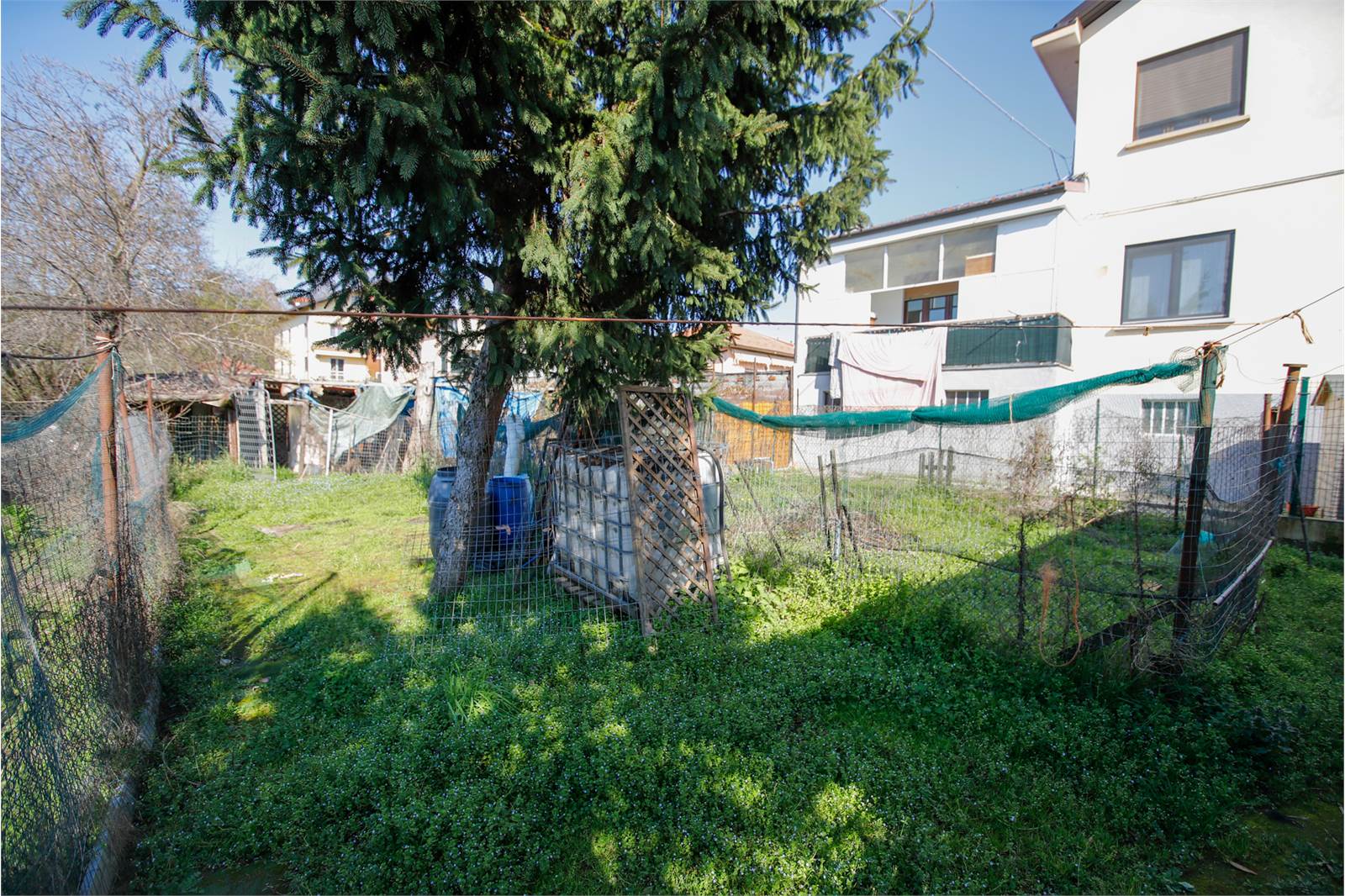 Alloggio (A) di ingresso su disimpegno, cucina abitabile, due camere, bagno e piccolo giardino privato (attualmente locato);