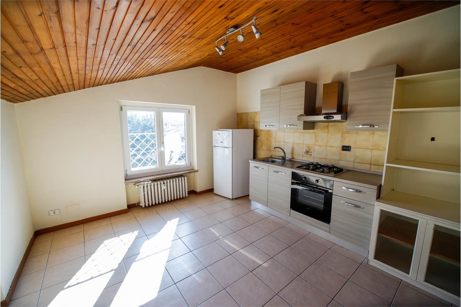 Alloggio (A) di ingresso su disimpegno, cucina abitabile, camera da letto e bagno (attualmente locato);
